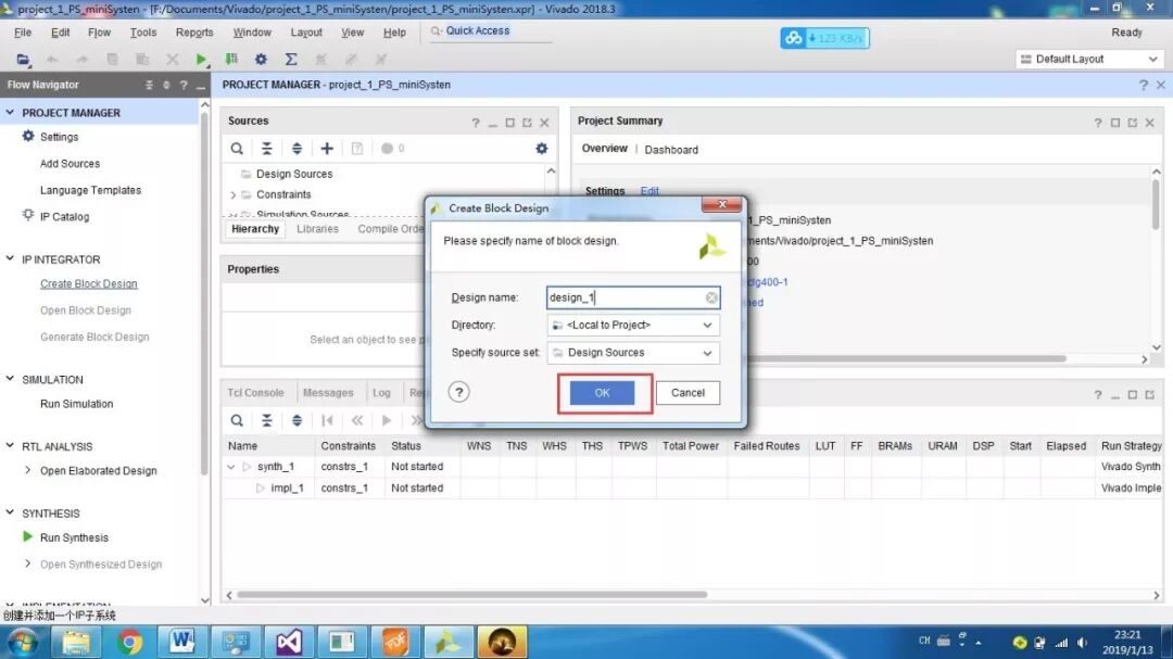 (1)工程新建后,新建块设计 – Create Block Design