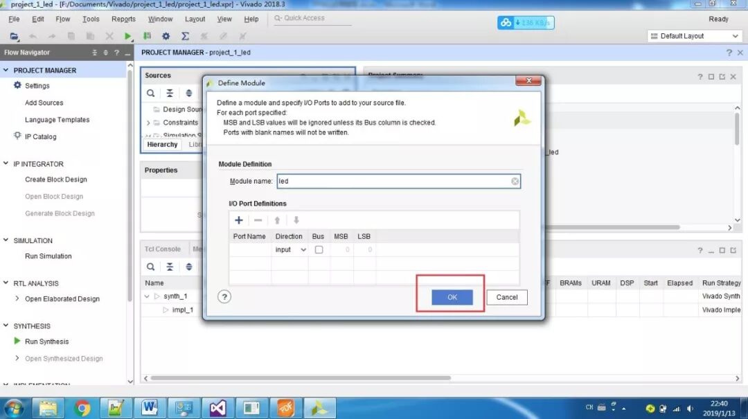 (1) 新建Vivado工程