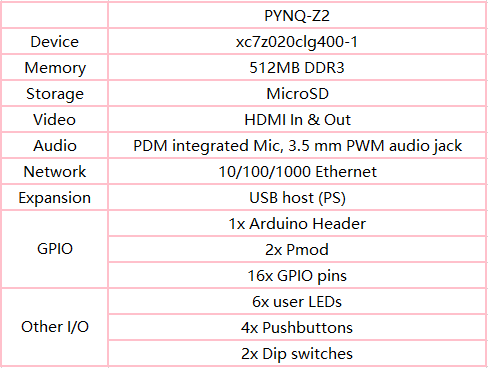 PYNQ-Z2板卡板载了下载器,可以不用额外的下载器下载程序。包括的主要资源如下表所示: