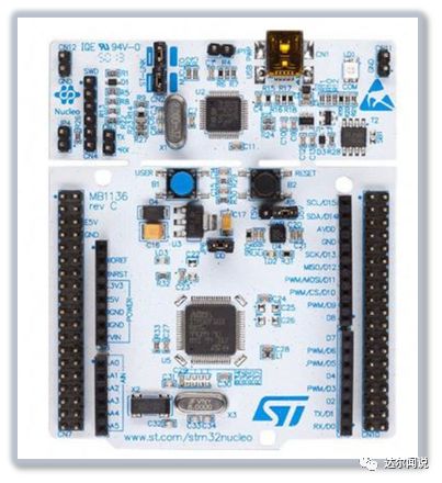 推荐理由:开源、外设丰富、上手快Seeeduino Lotus这套板有比较丰富的外设模块,都集成在一起了。使用的是原来atmel的avr单片机作为主控,同时引出了很多接插件接口,方便大家自己DIY不同的外设上去。我们手头的这套板子,包含了常用的一些外设。在资源方面,这套开发板有中文的应用手册,还有10几个案例教程教大家自己动手DIY ,比如提醒喝水的水杯,智能浇水设备,等等。大家可以在达尔闻说微信公众号,回复seeeduino获取资料。☞ STM32F401 Nucleo