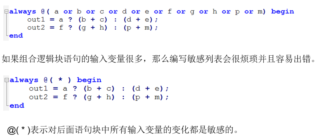 多个信号中间要用关键字or连接。always 语句后紧跟的过程块是否运行,要看它的触发条件是否满足。