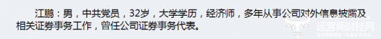 进入美的集团之前,他曾供职于星湖科技,担任过证券事务代表。2005年,这家公司发生人事变动,聘任江鹏为董事会秘书。值得一提的是,其换届公告中称,江鹏是“大学学历,经济师”。