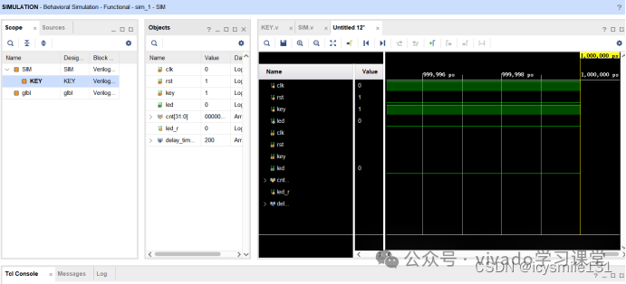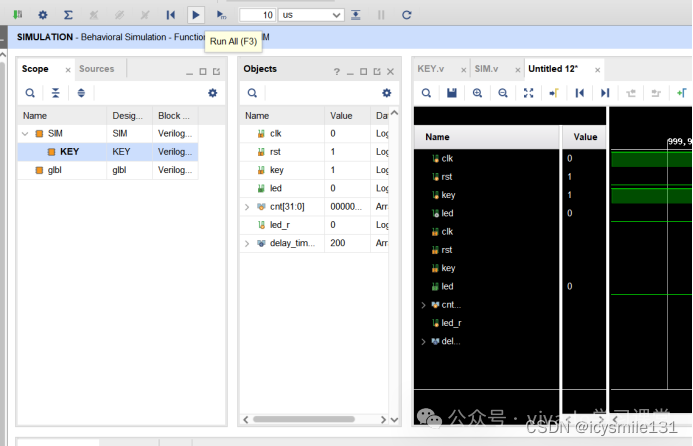右键点击Scope下的KEY,选择Add to Wave Window,将KEY中的信号全部添加到右侧视图中。