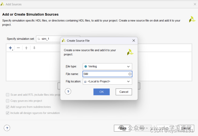 在同一个工程中,新建一个仿真测试文件SIM.v。