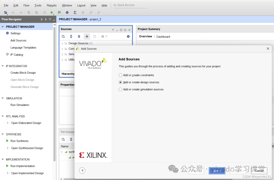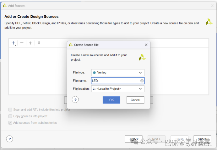 在vivado设计套件中,新建一个测试工程,新建文件LED.v。