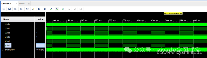 假设系统时钟为100ns,本文使用verilog语言,编写一个亮0.5s、暗0.5s的闪灯逻辑。