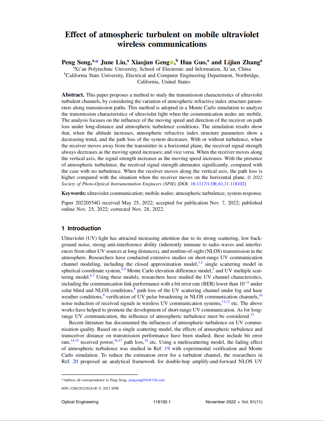 团队教师长期从事无线紫外光通信系统、无线紫外光成像探测技术、智能信号处理、阵列天线综合、天线设计等研究,已成功开发“无线紫外光通信系统”和“紫外光成像实验平台”,其中“成像平台”是国内首个搭载光电倍增管的紫外光成像装置。