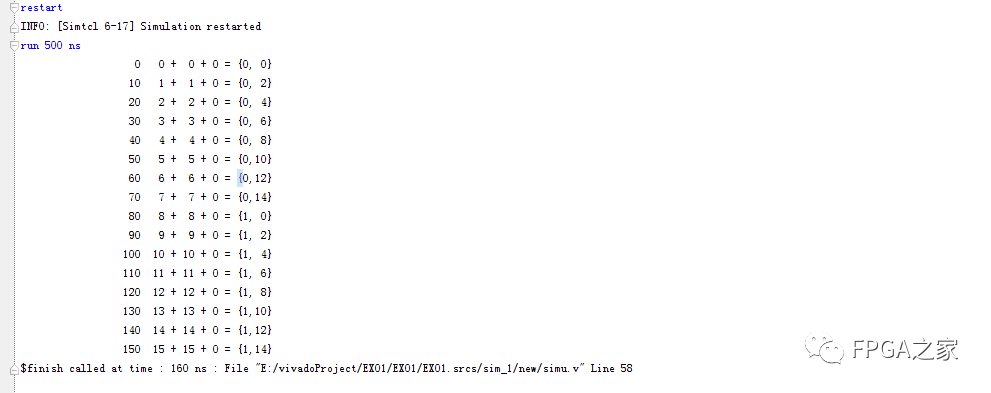 $monitor($time,,,"%d + %d + %b = {%b,%d}",a,b,cin,cout,sum);