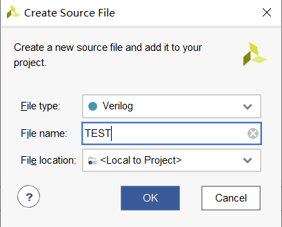 在此。我们需要的是创建 Verilog HDL 源文件,因此选中第二项 Add or Create Design Source 前面的单选按钮。点击Next,进入到源文件添加或者创建的界面。可以添加本地的源文件,或许新建,这里新建源文件。