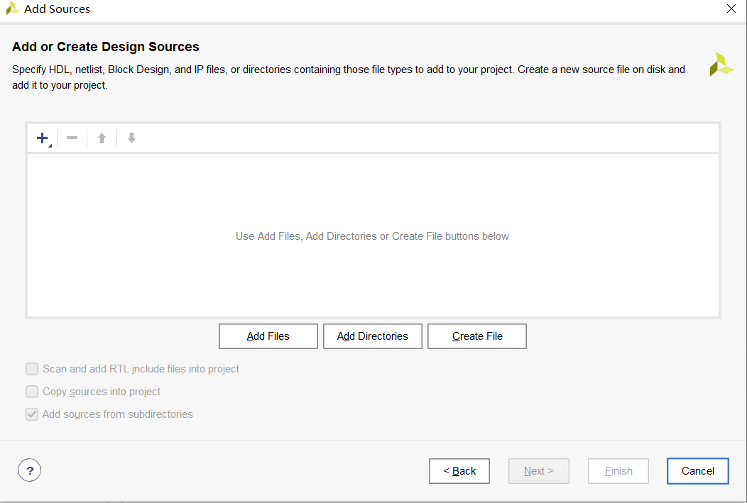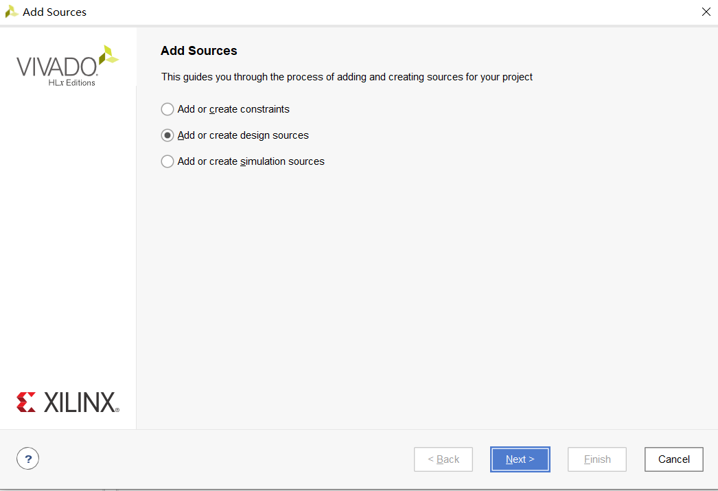 2) Add or Create Design Sources(添加或者创建设计源文件);