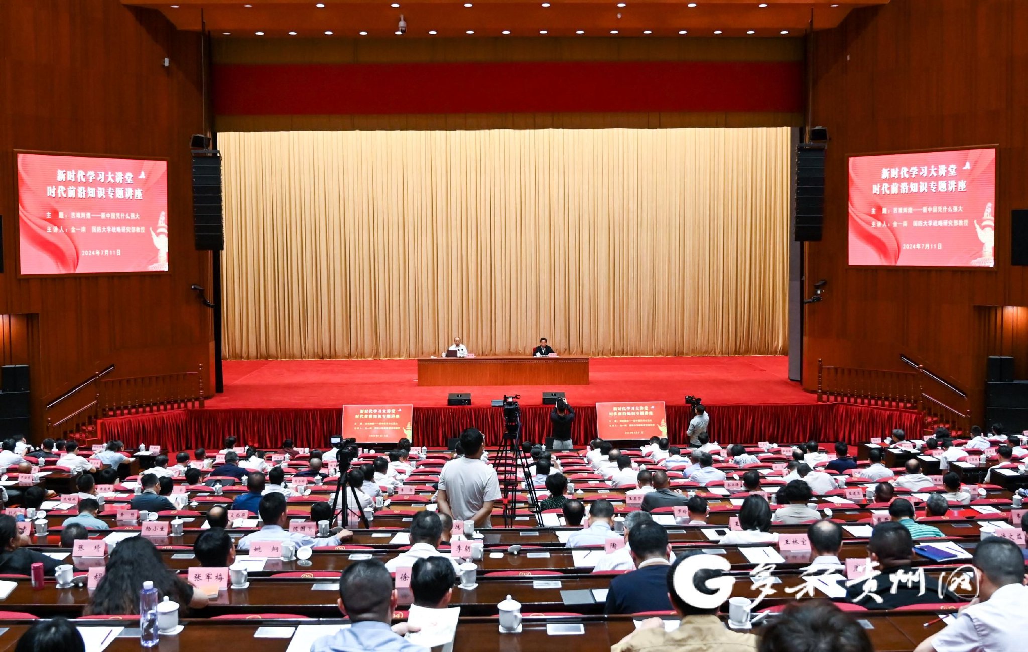 多彩贵州网讯(本网记者 张鸿杰) 7月11日,贵州省新时代学习大讲堂第57期时代前沿知识专题讲座在贵阳举行。国防大学战略研究部教授金一南以《苦难辉煌——新中国凭什么强大》为主题,用李约瑟之问、蒋廷黻之问、李奇微之问、邓稼先之问“四问”引题,站在历史和全局的高度,从文化、科技、军事、历史多角度生动阐释了“中国共产党为什么能”“马克思主义为什么行”“中国特色社会主义为什么好”。