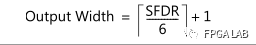 可见,输出数据宽度和SFDR以及Noise Shaping有关,你可先不必知道Noise Shaping和SFDR是什么?只需要暂时知道在IP核定制时需要选择即可,如果Noise Shaping选择了None and Dithering,则输出数据宽度为: