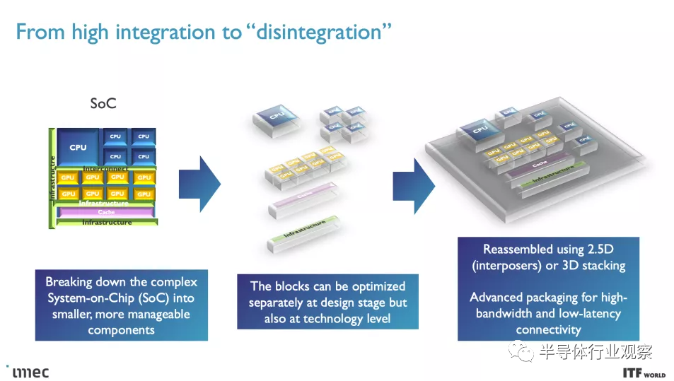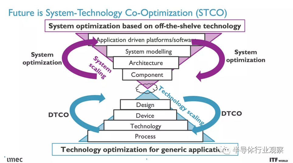 在最高级别,系统技术协同优化 (STCO:system technology co-optimization) 需要通过对系统和目标应用程序的需求建模来重新思考设计过程,然后使用这些知识来为创建芯片的设计决策提供信息。这种设计方法通常会导致“分解”通常作为单片处理器的一部分的功能单元,例如供电、I/O 和高速缓存,并将它们拆分为单独的单元,以通过使用不同的方法针对所需的性能特性优化每个单元类型的晶体管,然后也提高了成本。