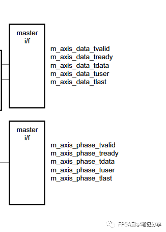Phase Generator and SIN/COS LUTPhase Generator onlySIN/COS LUT only分别对应结构图上的m_axis_data和m_axis_phase接口如下图,Phase Generator and SIN/COS LUT模式时,m_axis_data和m_axis_phase接口同时存在分别输出COS/SIN值和相位值;Phase Generator only模式时,只有m_axis_phase接口存在输出相位值;SIN/COS LUT only模式时,只有m_axis_data接口存在输出COS/SIN值。