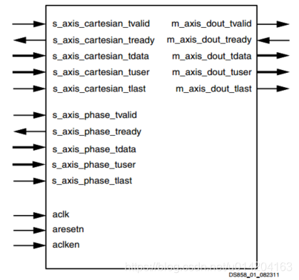 现在通过查看user guide得知CORDIC IP核的接口及主要特性。