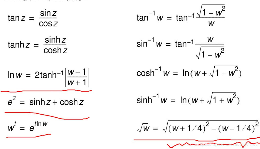 从表中发现,基本的乘除法、三角函数、反三角函数、双曲函数、反双曲函数、开根号都能够直接求得,那其他函数怎么办?
