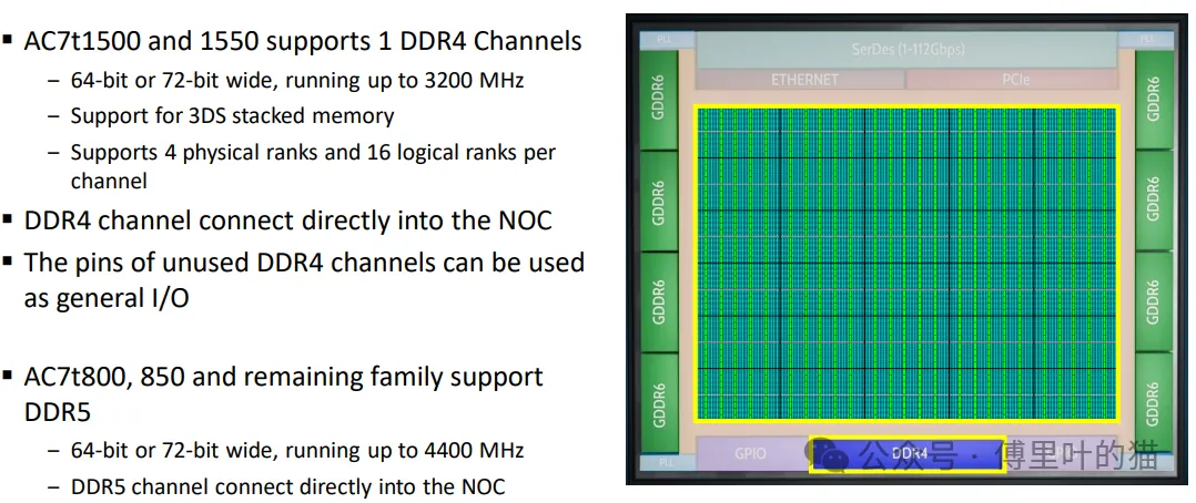 在Speedster7t上,就有300Mb的片上RAM空间,而从Virtex Ultrascale+,也仅仅是最高端的VU57P能与之抗衡,其他FPGA的RAM空间完全比不了。对于DDR Controller,更是支持DDR4/5和GDDR6,在目前的Virtex Ultrascale+的FPGA中,都没有的。
