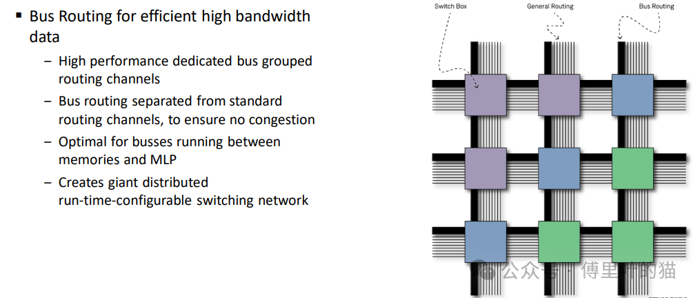 在Bus Routing上,Achronix的FPGA更是有绝对的优势,他们专门为这种高带宽的互联做了设计和优化,更是在FPGA上集成了NOC,跟传统FPGA中的routing有很大的区别,这也让我们在复杂设计中可以减少因为Congestion导致的各种问题,减少代码的开发和编译时间。