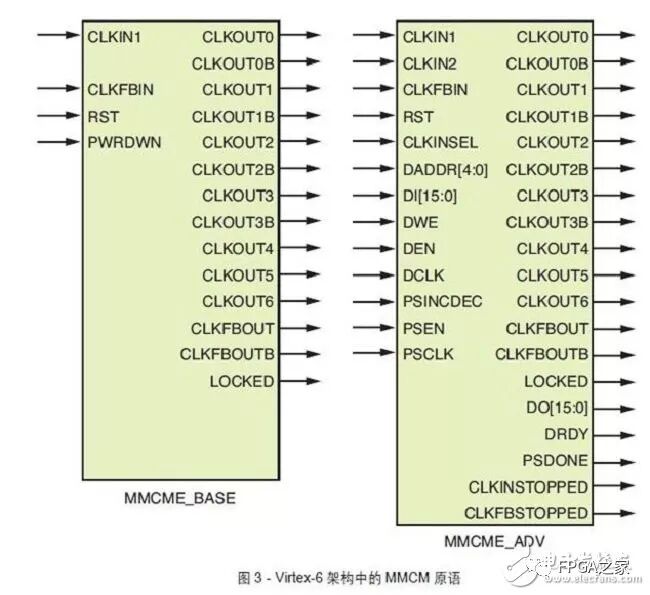 图 3显示了Virtex-6FPGA中的MMCM原语。各个端口的详细介绍请参阅Virtex-6FPGA时钟资源用户指南(UG362,2.1版本)。图 4显示了赛灵思7系列FPGA中的MMCM原语,有关详细介绍请参阅7系列FPGA时钟资源用户指南(UG472,1.5版本)。