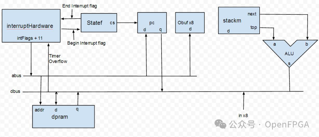 基于堆栈的 cpu - Pancake进行了扩展,包含一些同步中断操作。涉及对 cpu 状态机、cpu 硬件部分以及编译器部分更改。