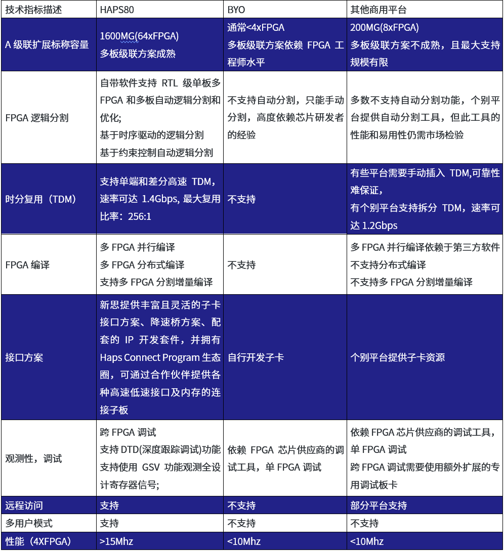 显而易见,新思科技的HAPS方案,在全面性,成熟度,和对大规模设计的支持上,都占有绝对明显的优势。