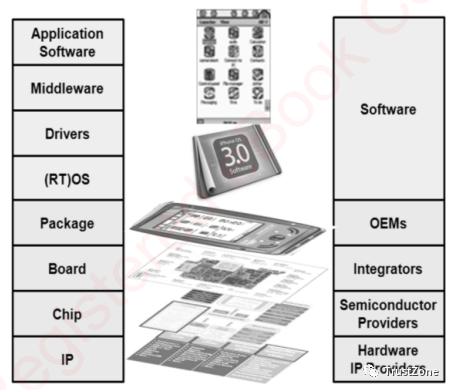 知识产权提供商向半导体供应商销售, 半导体供应商向集成商 集成商又是oem销售商 所有这些供应商都为软件开发人员提供支持。这些交互的启用可以说已经成为当今工具供应商要解决的最大问题。