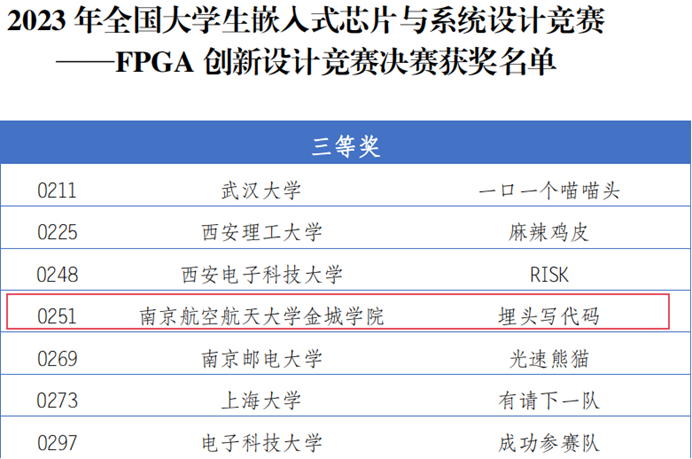 2023年12月3日,2023全国大学生嵌入式芯片与系统设计竞赛——FPGA创新设计竞赛落下了帷幕。南京航空航天大学金城学院信息工程学院有6支队伍参加了本次大赛,在经过激烈的选拔后由李世豪、叶金羊和李智设计的“基于高云GW2A实现的网络视频监控系统”喜获全国三等奖!