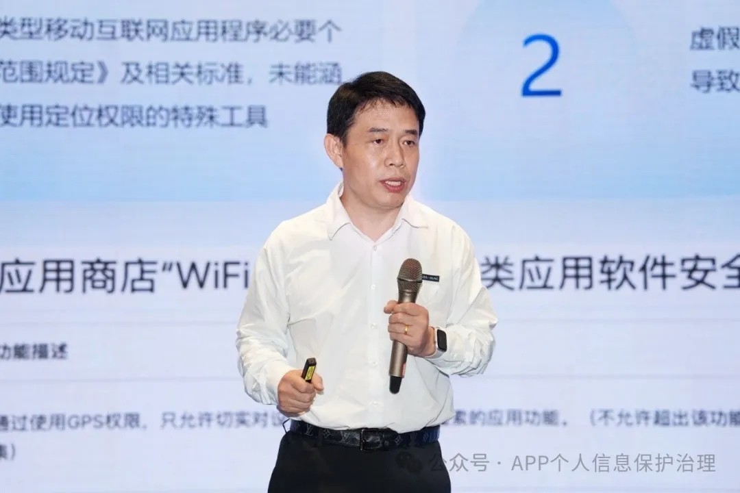 中国信通院泰尔终端实验室专家顾世鸿围绕《要点及专项整治行动整改流程》做了主题分享,就违规收集个人信息、过度索取权限、欺骗误导强迫用户等典型问题,进行了细致讲解。