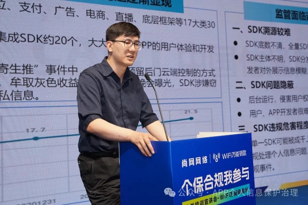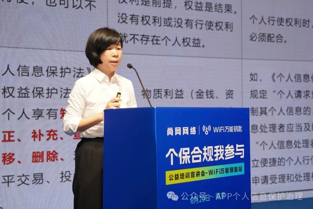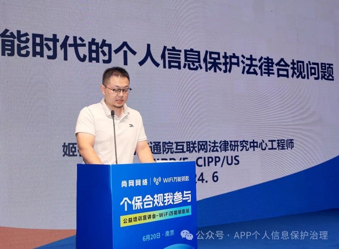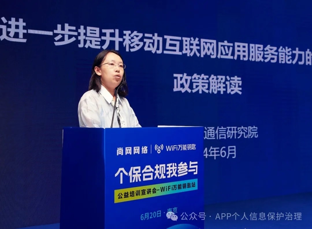 为帮助广大中小企业、APP开发者做好个人信息保护工作,进一步提升APP合规水平,更好地维护用户合法权益,在工业和信息化部信息通信管理局的指导下,6月20日,“个保合规我参与”公益培训宣讲会WiFi万能钥匙站(2024年第二站)在南京举办。江苏省通信管理局有关负责同志、中国信息通信研究院(以下简称,中国信通院)专家和近百名移动应用开发者参加活动,进行交流分享。